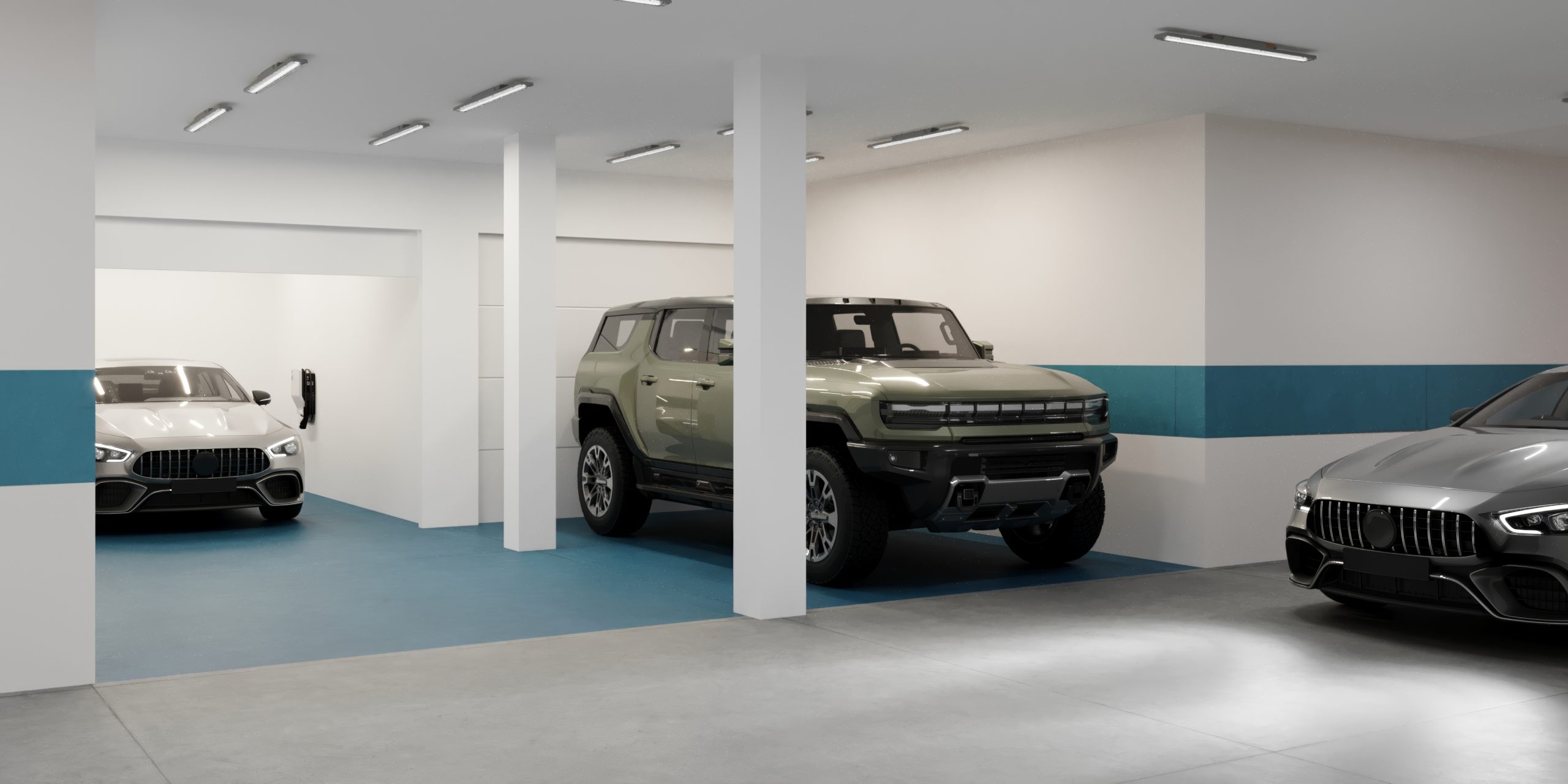 All homes are laid out on four levels, connected by a private elevator – from the garage in the underground level to the roof terrace. The underground level will include a private garage, where each owner will have two parking spaces, a utility room and a laundry room, as well as direct access to the living area, with the possibility of additional personalization. The first floor will feature a living area with an open kitchen, living room and dining room with large glass windows, access to the terrace and garden, and a guest toilet. On the first floor, a sleeping area has been designed: a master bedroom with its own bathroom, dressing room and private terrace, and two guest rooms with built-in closets and a shared bathroom. On the top floor, a spacious terrace-solarium with the possibility of installing a Jacuzzi, a summer kitchen with barbecue, and lounge areas with full, panoramic views are envisioned.
